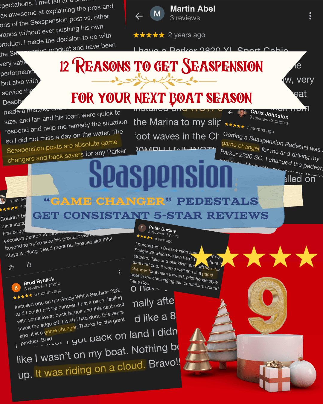 As the holiday season unfolds, Seaspension is delighted to share 12 compelling reasons why our shock-absorbing boat seat pedestals stand out as the ultimate gift for boating enthusiasts. This festive season, we're not only bringing you the joy of comfortable and smooth rides but also offering exclusive savings in our THIRD "Back" Friday & Beyond Holiday Sale, which ends on December 20, 2023. Let's dive into the reasons that make Seaspension the perfect addition to your boating adventures.