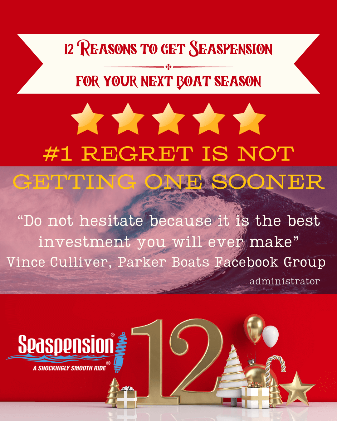 Vince Culliver from a Parker Boats Facebook Group admits that not getting Seaspension sooner is his #1 regret. Don't let this be your regret! Act now during our THIRD "Back" Friday & Beyond Holiday Sale and enjoy 10% off with free shipping within the Continental USA.