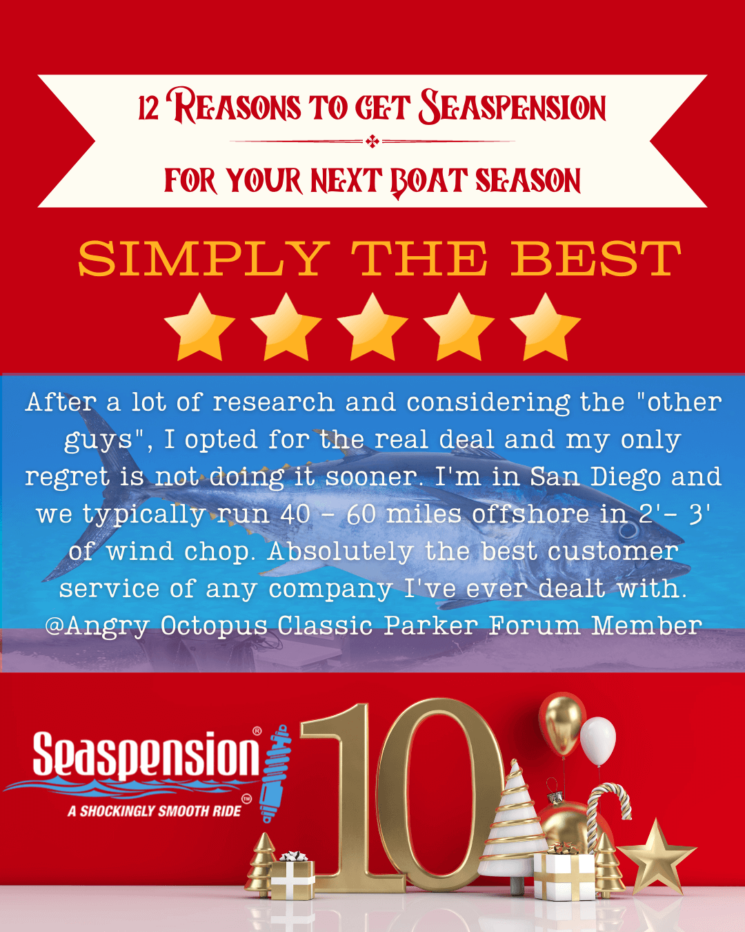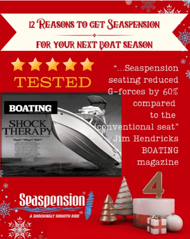 As the holiday season unfolds, seize the opportunity to elevate your boating experience with Seaspension's shock-absorbing pedestals. Our 12 reasons, coupled with exclusive savings in our ongoing sale, make Seaspension the perfect gift for yourself or your favorite boating enthusiast. Don't miss out on the chance to make every ride smoother, more comfortable, and filled with joy. Embrace the holidays and the waves with Seaspension!
