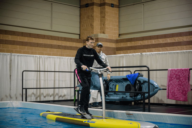- Paddle Sports Pool (Booth 2040): Stand-up paddleboarding (SUP), kayaking, and demo rides.